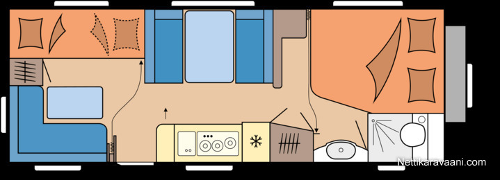 Bunk bedCarpets in backCassette WCCassette curtainsDouble bedFreezerFridgeHot-water tankShowerSinkStoveOther