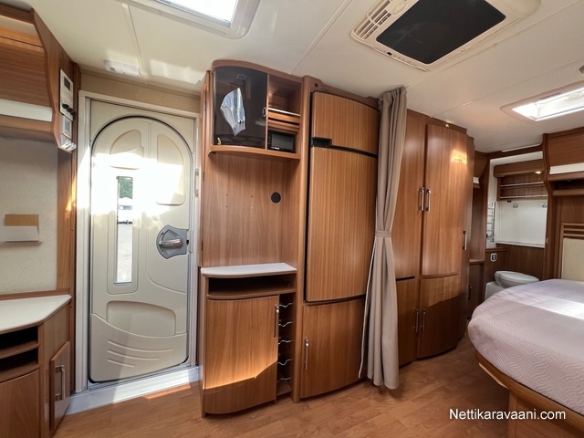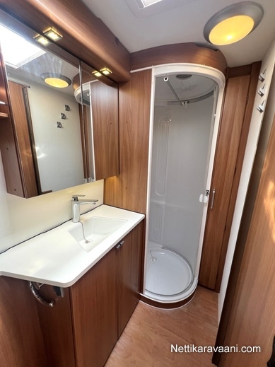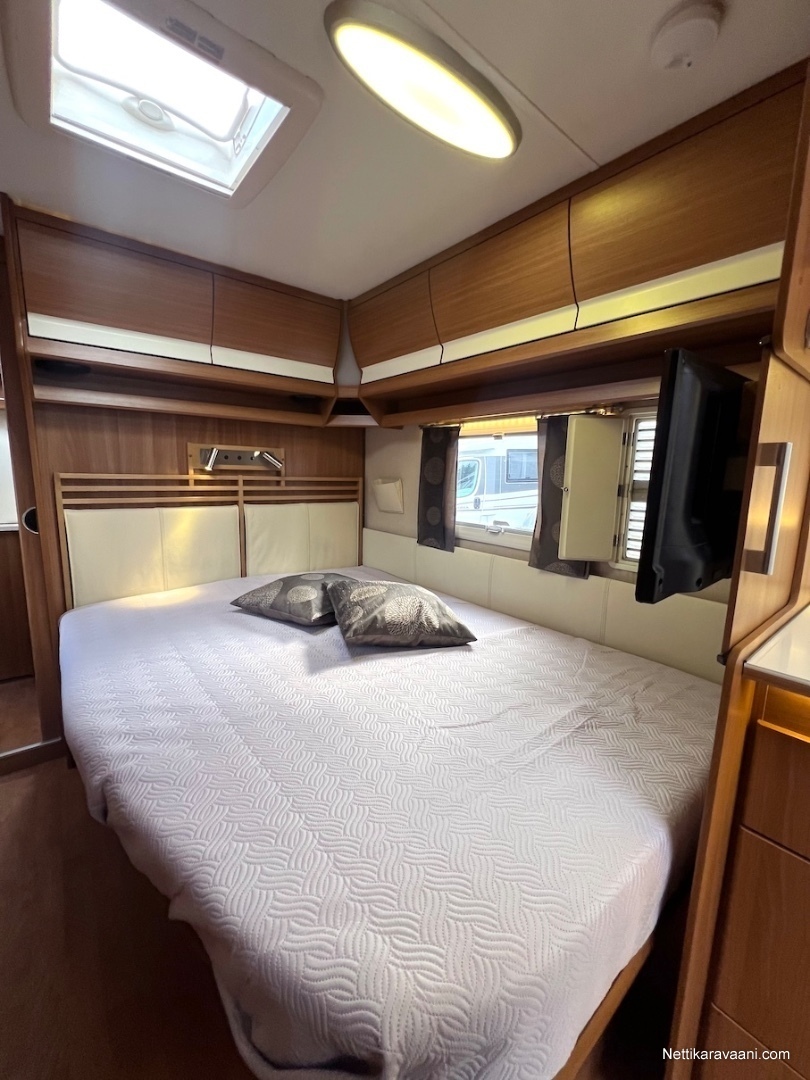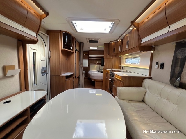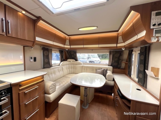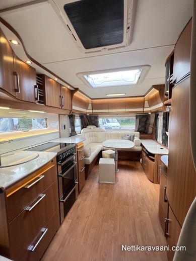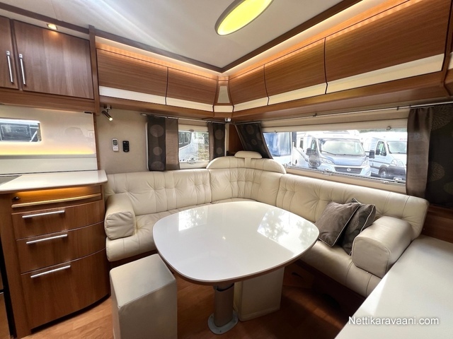 Alde -nestekeskuslämmitys, nestekiertoinen lattialämmitys, kaikki vesijärjestelmät sisällä lämpimässä, EcoPrim Foam -eristys, asuinosan ilmastointi, Pioneer -multimediajärjestelmä, suuri jääkaappi erillisellä pakastimella, kaasu-uuni/liesi -yhdistelmä, liesituuletin, nahkaverhoilu, L-istuinryhmä, LED-valaistus ja epäsuora tunnelmavalaistus, runsaasti kaappitilaa, erillinen suihku, ikkunallinen ulko-ovi, hyttysverkko-ovi, suksiluukku, alumiinivanteet, kitkavetopää, kWh-mittari, TV-antenni ja TV.
