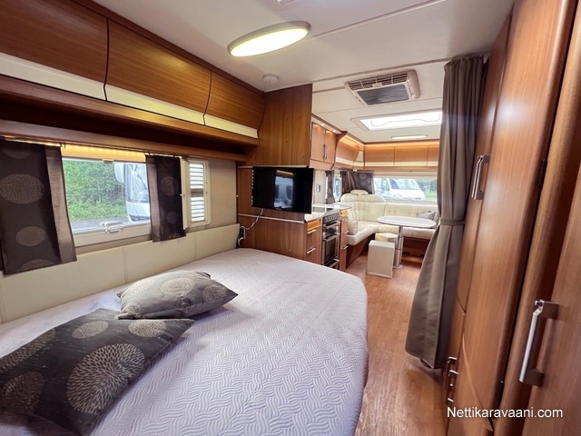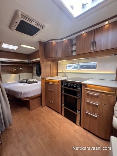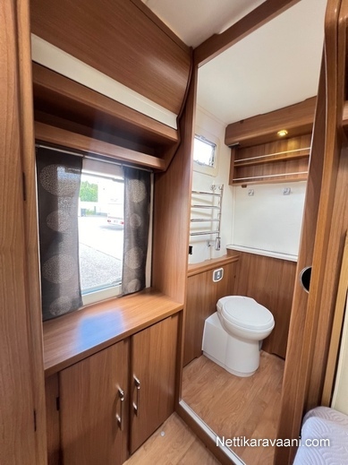 Tilava Royal -sarjan Kabe -matkailuvaunu suurella takaosan kylppärillä!